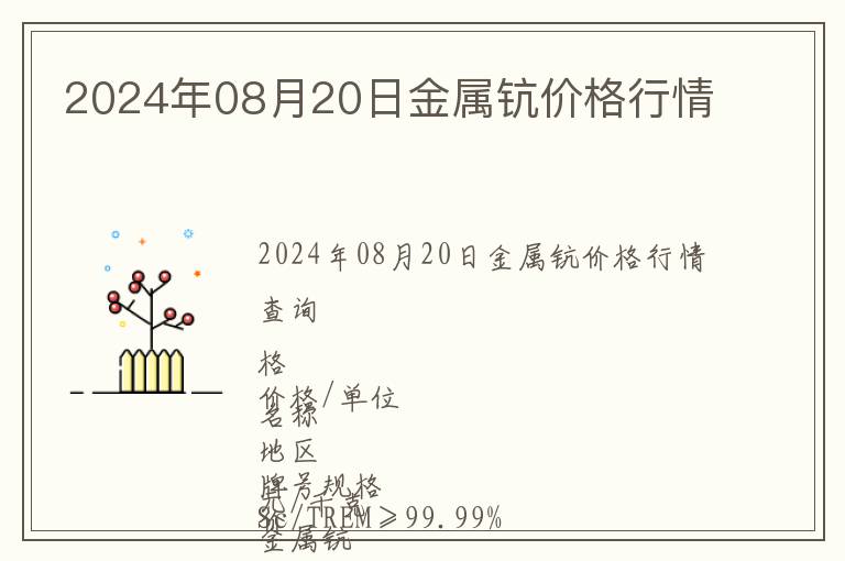 | 2024年08月20日金屬鈧價格行情查詢 |