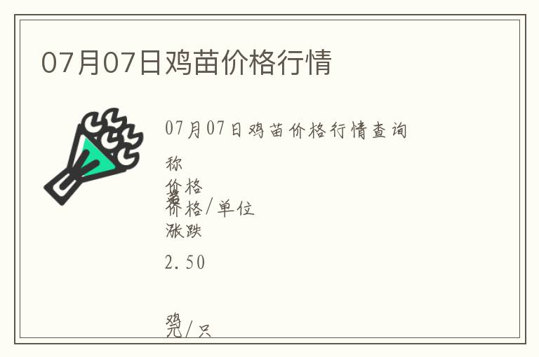 | 07月07日雞苗價格行情查詢 |