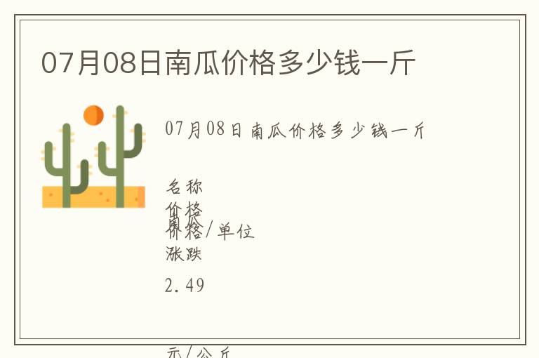 | 07月08日南瓜價格多少錢一斤 |