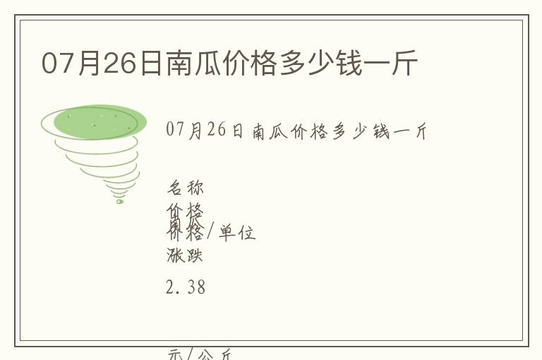 | 07月26日南瓜價(jià)格多少錢一斤 |