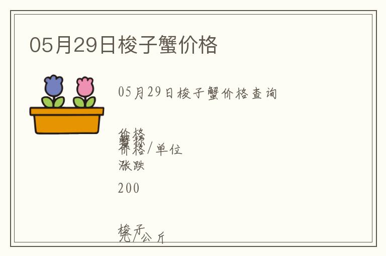 | 05月29日梭子蟹價格查詢 |